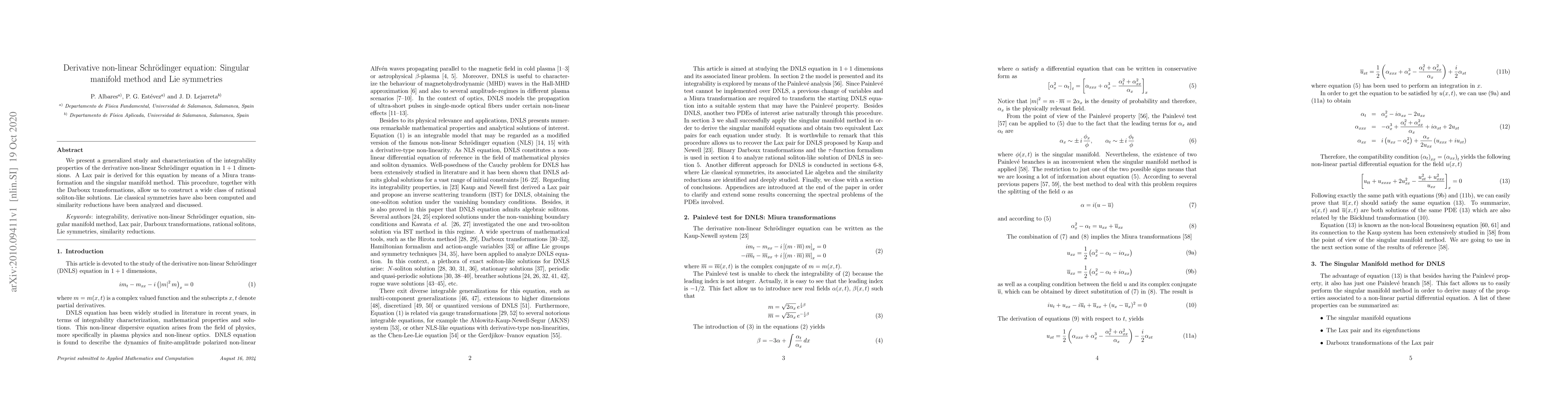The paper presents a detailed application of the Miura transformation and singular manifold method to derive Lax pairs and Lie symmetries for the DNLS equation and related PDEs, providing a robust framework for integrability analysis.