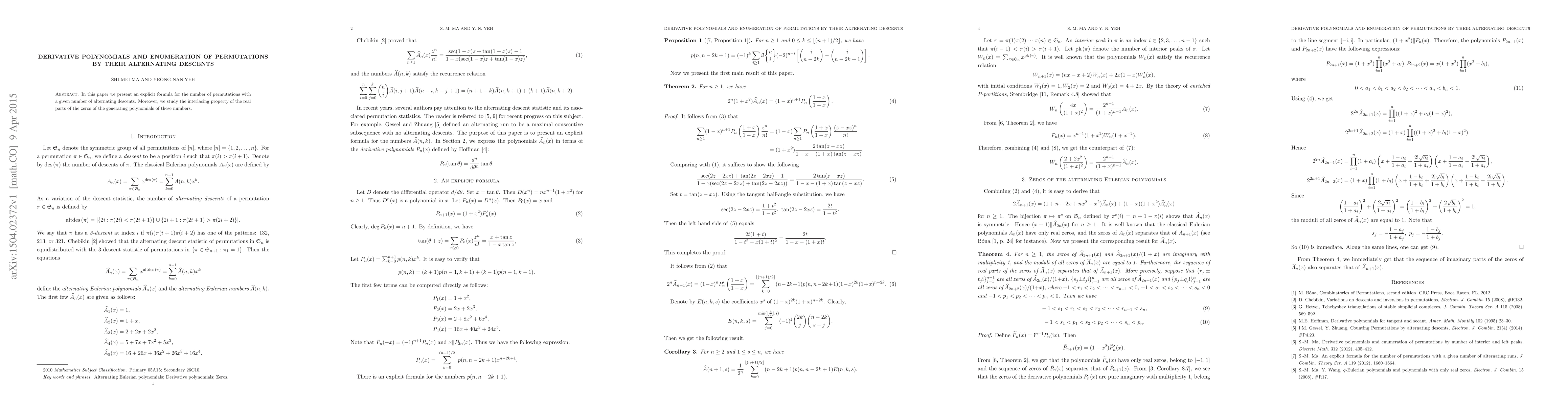 This paper provides an explicit formula for counting permutations based on their alternating descents and investigates the interlacing property of the real parts of the zeros of the generating polynomials associated with these counts.