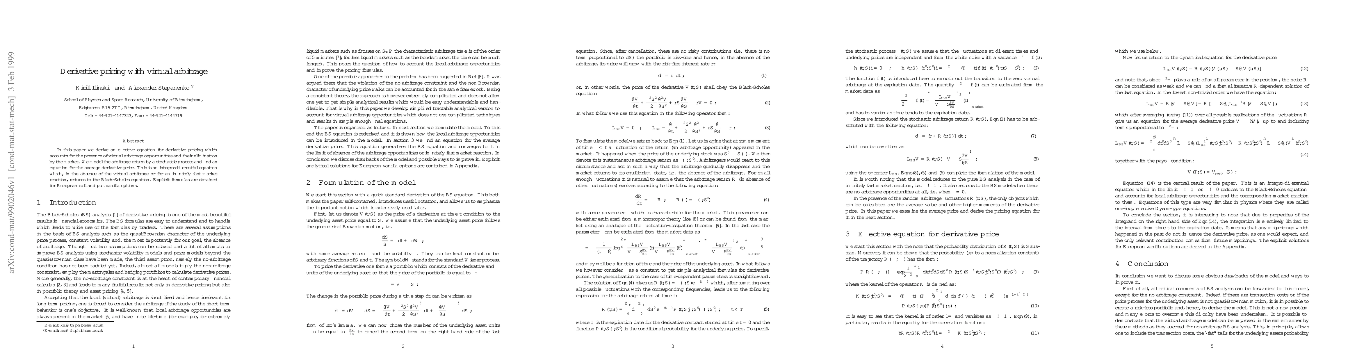 This paper derives an integro-differential equation for derivative pricing that incorporates virtual arbitrage, reducing to the Black-Scholes equation under certain conditions. Explicit formulas for European call and put options are provided.