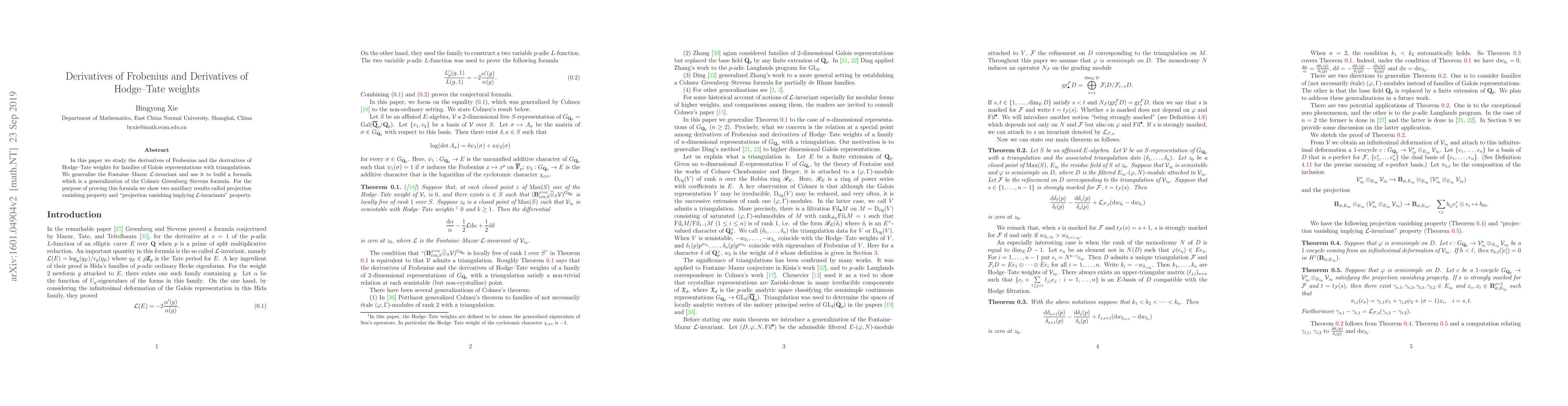In this paper we study the derivatives of Frobenius and the derivatives of Hodge weights for families of Galois representations with triangulations. We generalize the Fontaine-Mazur L-invariant and use it to build a formula which is a generalization of the Greenberg-Stevens-Colmez formula. For the purpose of proving this formula we show two auxiliary results called projection vanishing property and "projection vanishing implying L-invariants" property.