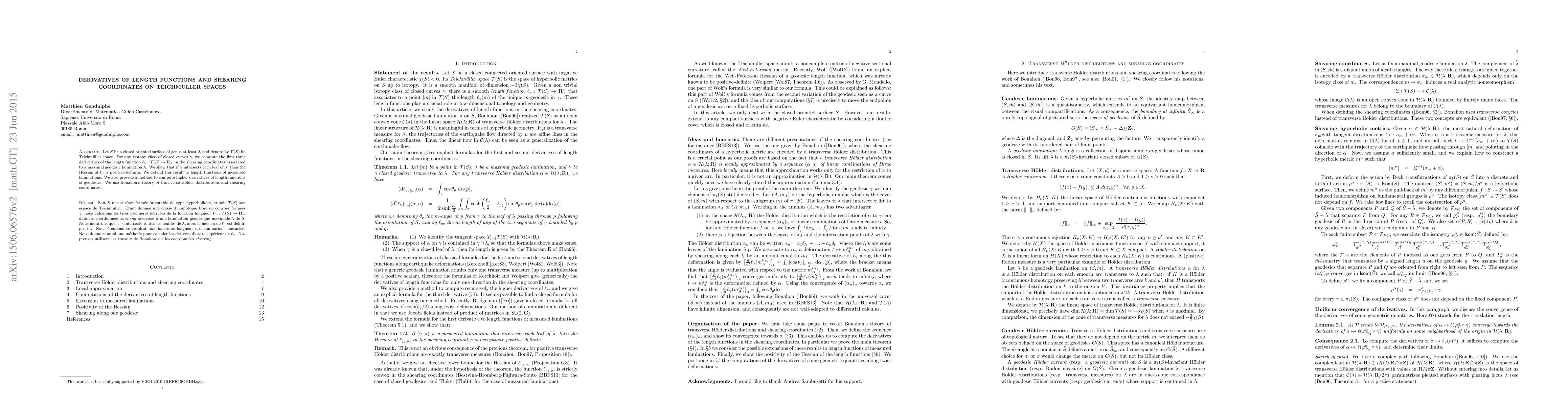 This paper computes the first three derivatives of length functions on Teichmüller spaces associated with closed curves intersecting every leaf of a maximal geodesic lamination, proving the Hessian is positive-definite. It extends the result to measured laminations and provides a method for computing higher derivatives, leveraging Bonahon's theory of shearing coordinates.
