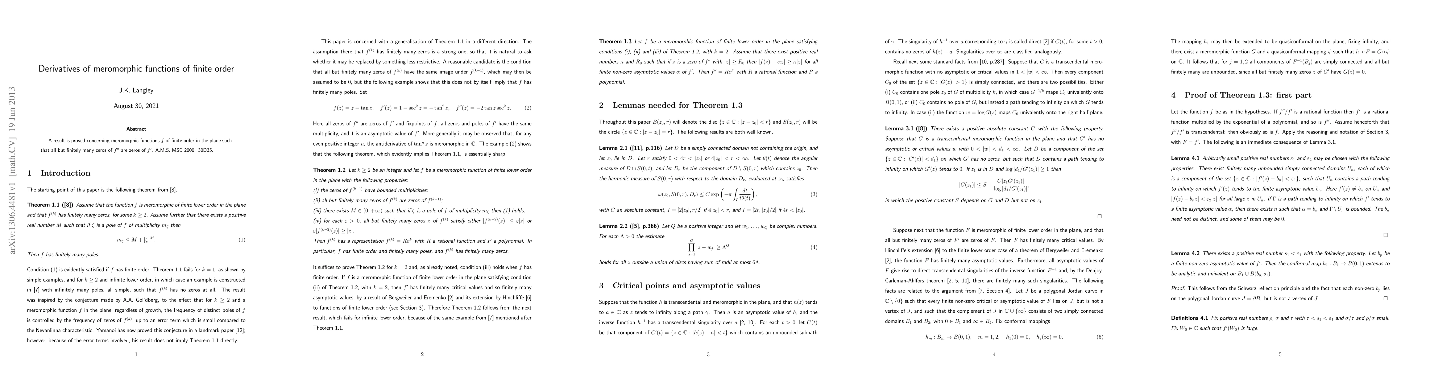 A result is proved concerning meromorphic functions of finite order in the plane such that all but finitely many zeros of the second derivative are zeros of the first derivative.