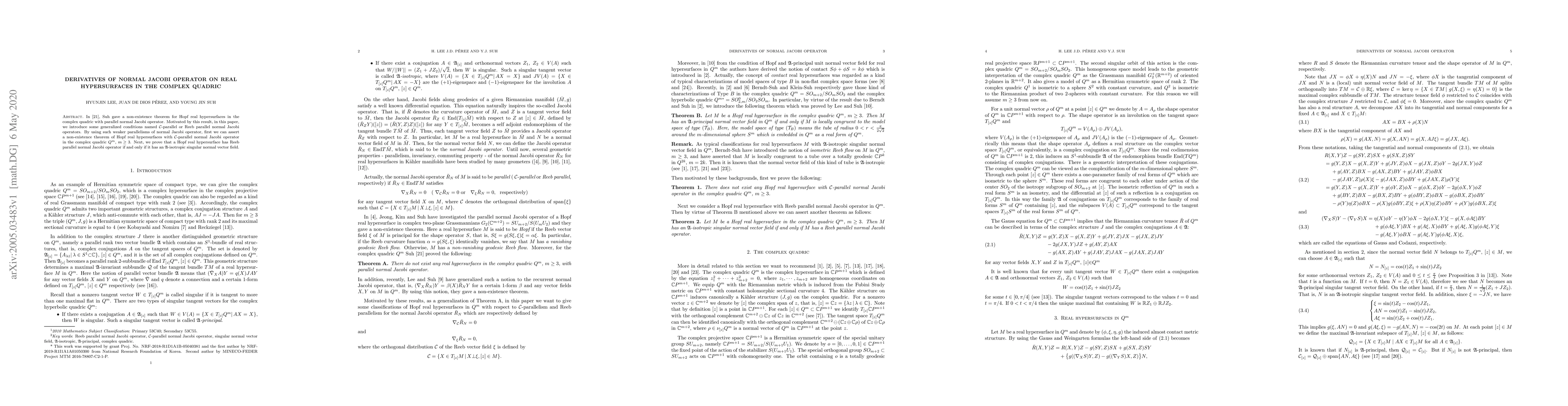 This paper extends Suh's non-existence theorem for Hopf real hypersurfaces in the complex quadric with a parallel normal Jacobi operator by introducing $\mathcal C$-parallel and Reeb parallel conditions. It proves that Hopf real hypersurfaces with $\mathcal C$-parallel normal Jacobi operators do not exist in $Q^{m}$ for $m \geq 3$, and establishes a condition linking Reeb parallel normal Jacobi operators to $\mathfrak A$-isotropic singular normal vector fields.