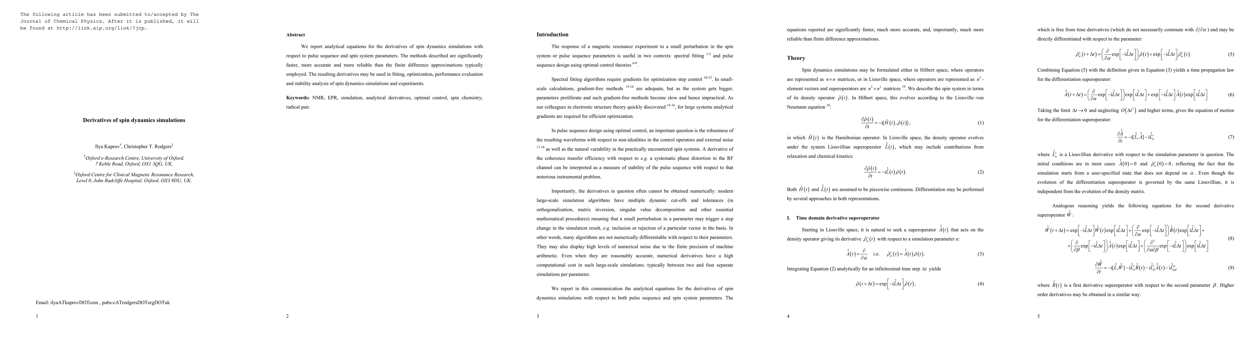 Researchers have developed faster and more accurate analytical equations for derivatives of spin dynamics simulations, which can improve fitting, optimization, and analysis in NMR and EPR experiments.