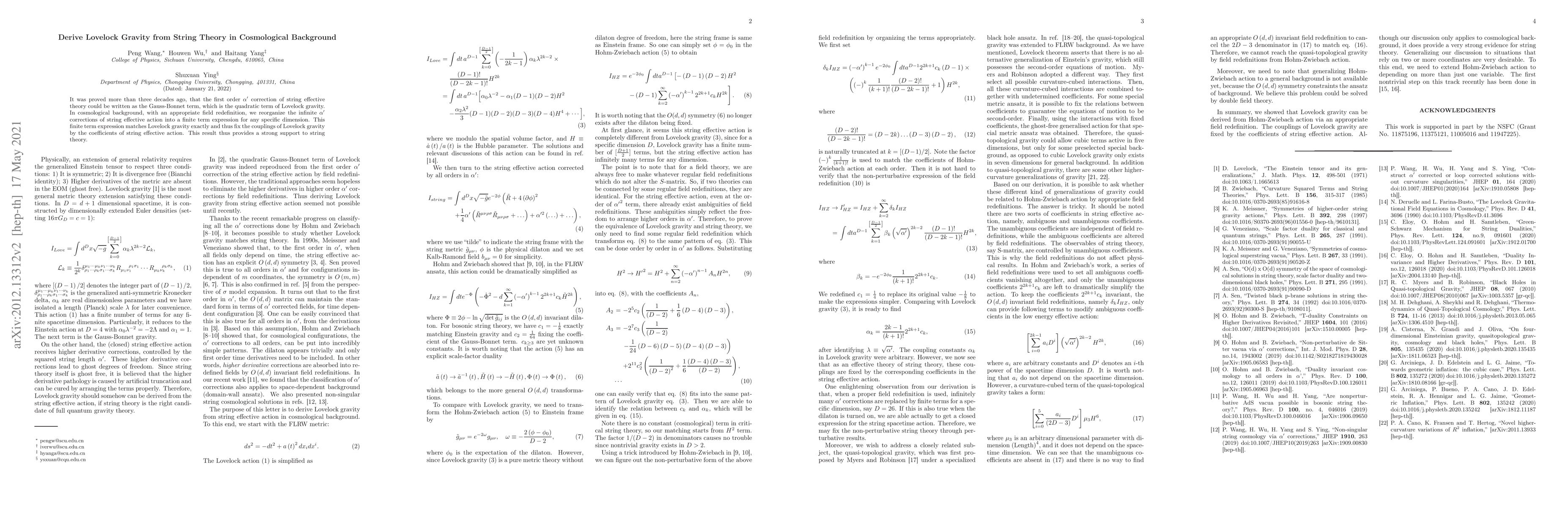 Researchers derive a connection between string theory and Lovelock gravity in cosmological backgrounds, providing strong support for string theory by fixing the couplings of Lovelock gravity.