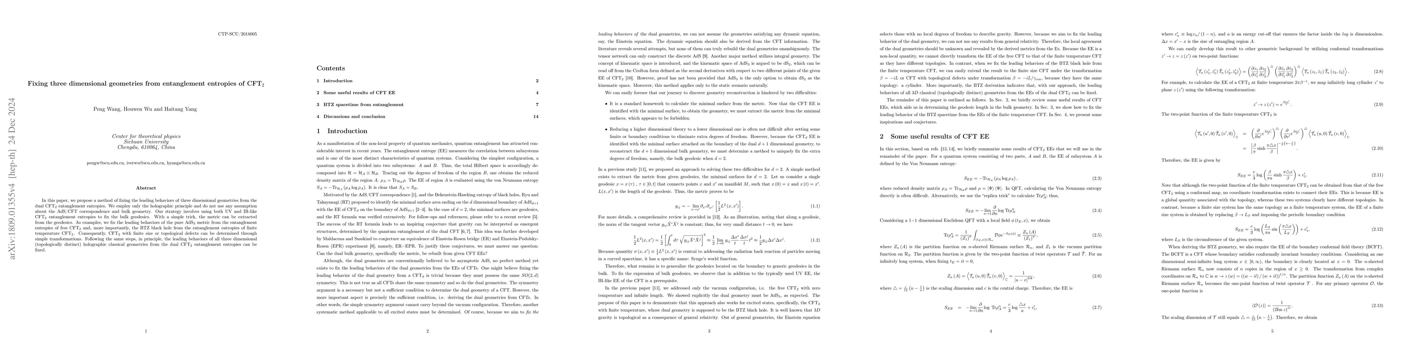 This paper proposes a method to derive three-dimensional geometries using the entanglement entropies of CFT$_2$ without relying on the AdS/CFT correspondence. By employing both UV and IR-like CFT$_2$ entanglement entropies, the authors extract the metric from bulk geodesics, successfully deriving the pure AdS$_3$ and BTZ black hole metrics.