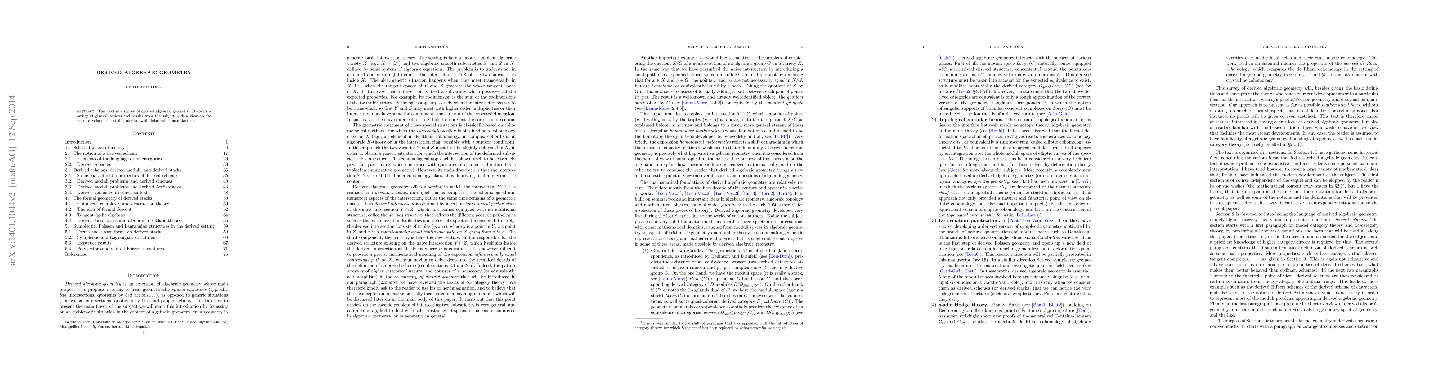 Summary: This survey provides an overview of derived algebraic geometry, emphasizing recent advancements and connections to deformation quantization, highlighting key concepts and results from the field.