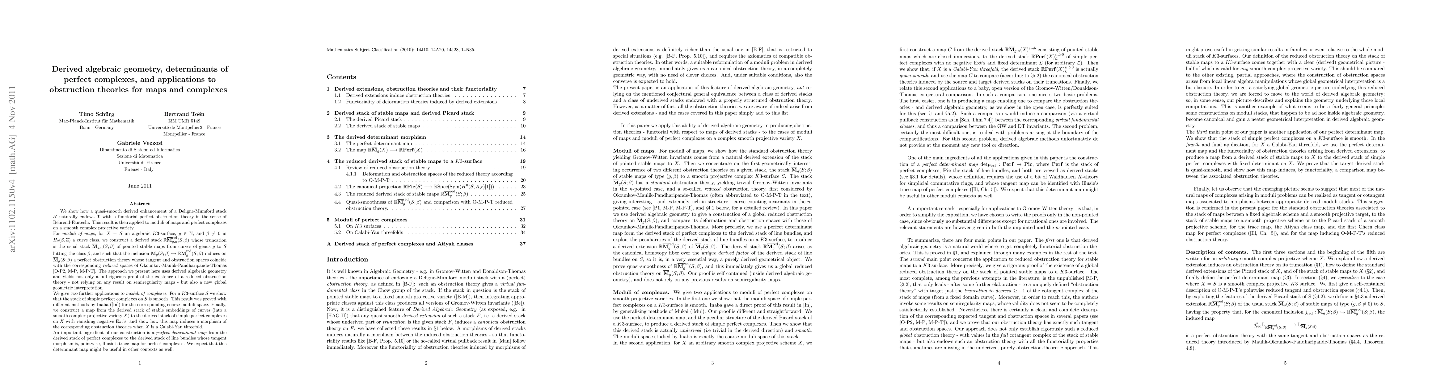 The paper develops a quasi-smooth derived enhancement of Deligne-Mumford stacks, endowing them with a perfect obstruction theory. This framework is applied to moduli spaces of maps and perfect complexes on K3 surfaces and Calabi-Yau threefolds, constructing derived stacks that yield smooth obstruction theories and a determinant map useful for further applications.