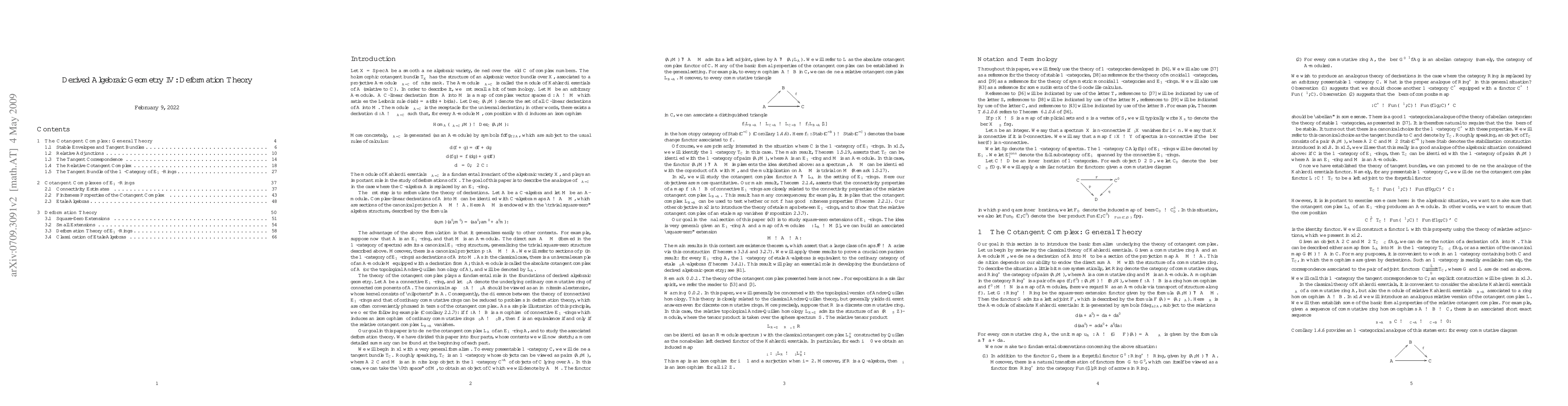 Researchers prove foundational results on deformation theory of E-infinity ring spectra, advancing algebraic geometry.
