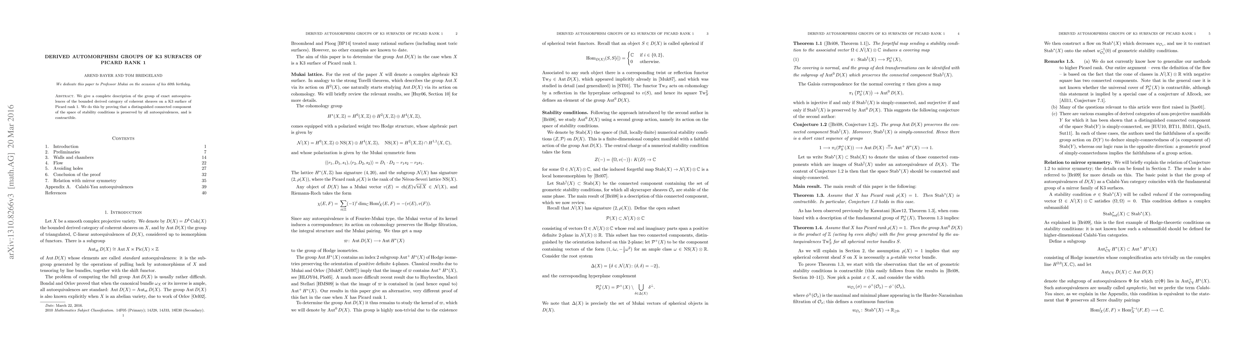We give a complete description of the group of exact autoequivalences of the bounded derived category of coherent sheaves on a K3 surface of Picard rank 1. We do this by proving that a distinguished connected component of the space of stability conditions is preserved by all autoequivalences, and is contractible.