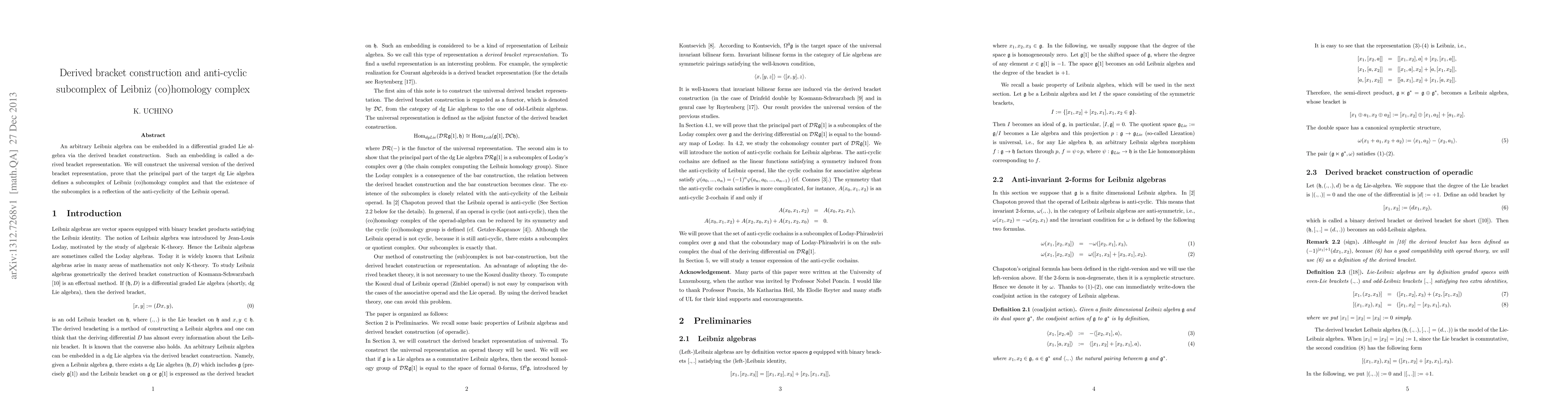 Summary: This paper introduces a universal derived bracket representation of Leibniz algebras within differential graded Lie algebras, demonstrating that this representation's principal part forms an anti-cyclic subcomplex in the Leibniz (co)homology complex, revealing the underlying anti-cyclicity of the Leibniz operad.