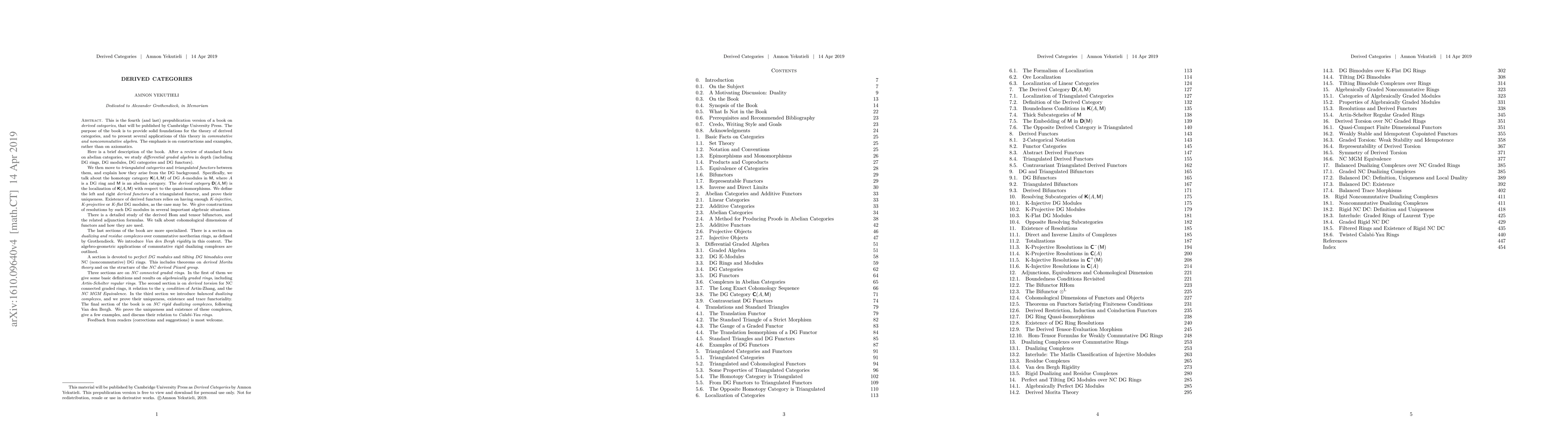 This book offers a comprehensive foundation for derived categories theory, focusing on constructions and examples. It covers differential graded algebra, triangulated categories, localization of categories, and applications in both commutative and noncommutative algebra, including discussions on DG modules, dualizing complexes, and noncommutative graded rings.