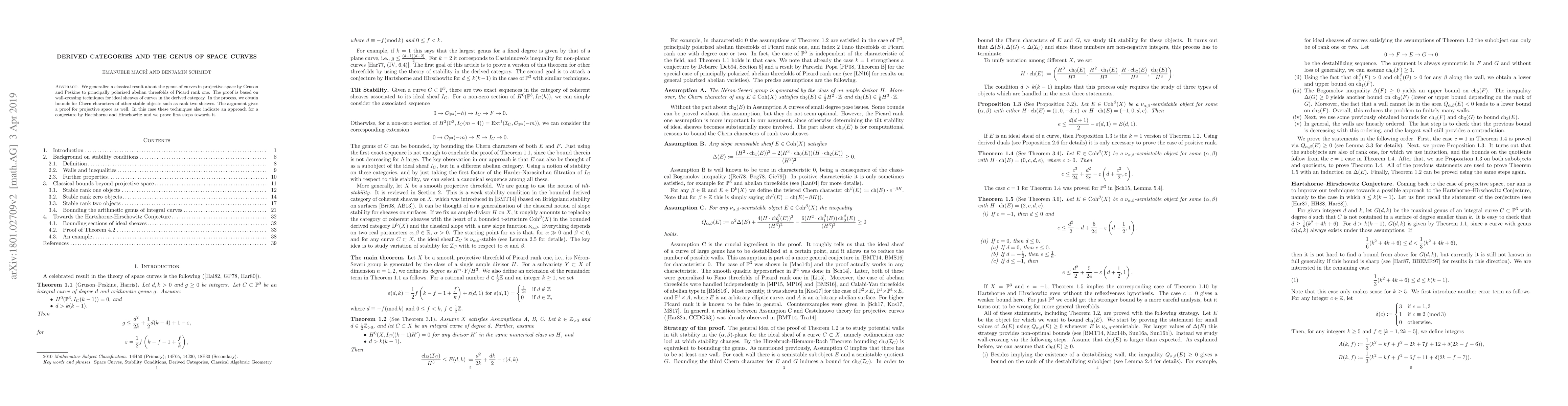 We generalize a classical result about the genus of curves in projective space by Gruson and Peskine to principally polarized abelian threefolds of Picard rank one. The proof is based on wall-crossing techniques for ideal sheaves of curves in the derived category. In the process, we obtain bounds for Chern characters of other stable objects such as rank two sheaves. The argument gives a proof for projective space as well. In this case these techniques also indicate an approach for a conjecture by Hartshorne and Hirschowitz and we prove first steps towards it.
