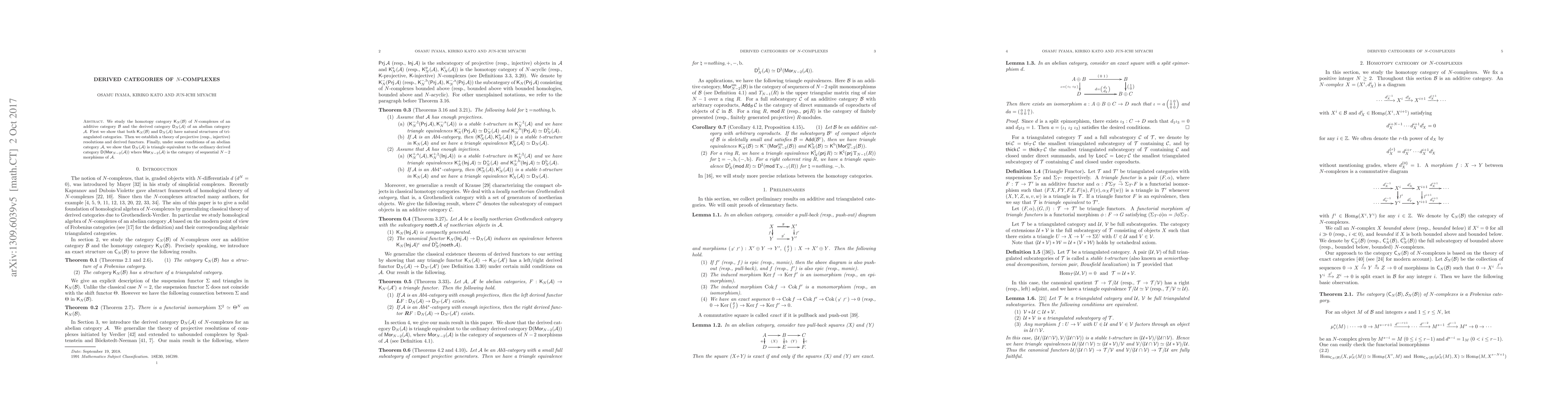 This paper explores the homotopy category $\mathsf{K}_{N}(\mathcal{B})$ and derived category $\mathsf{D}_{N}(\mathcal{A})$ of $N$-complexes in additive and abelian categories, respectively, establishing them as triangulated categories and developing a theory of resolutions and derived functors. It also demonstrates triangle equivalence between $\mathsf{D}_{N}(\mathcal{A})$ and the ordinary derived category $\mathsf{D}(\mathsf{Morph}_{N-2}(\mathcal{A}))$ under certain conditions.
