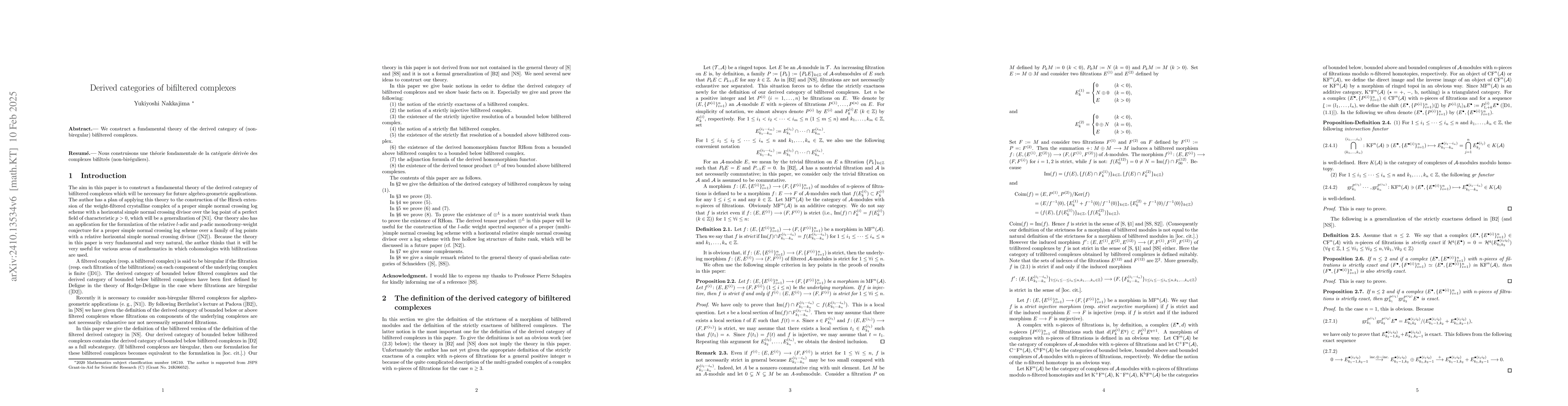 This paper develops a foundational theory for the derived category of non-finite bi-filtered complexes, establishing essential structures and properties within this mathematical framework. The construction provides a robust theoretical foundation for further research in this area.
