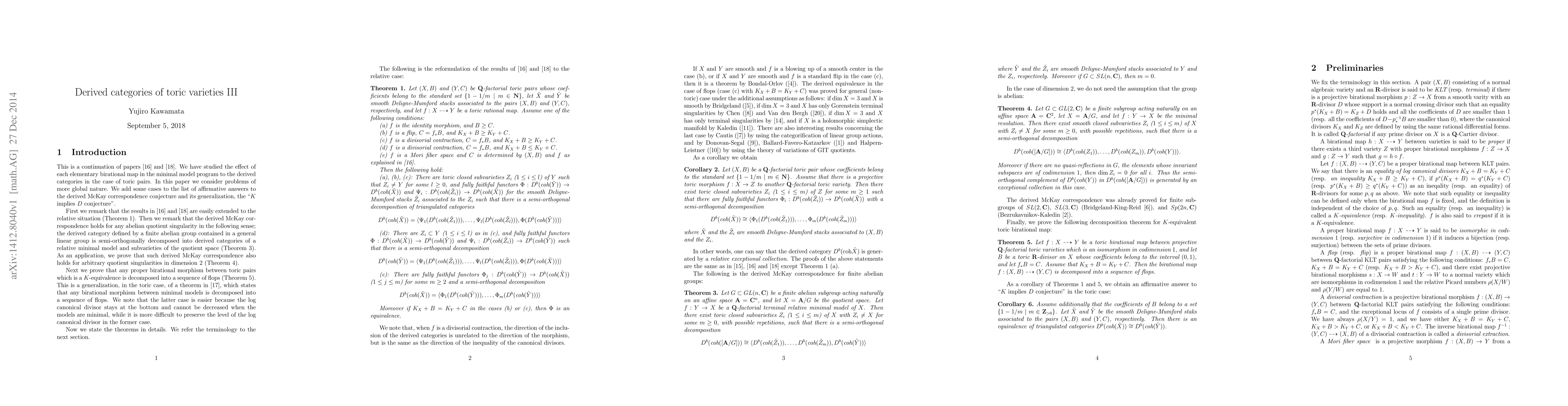 Summary: This paper establishes the derived McKay correspondence in specific instances and decomposes toric K-equivalence into flops, contributing to the understanding of toric varieties' derived categories.