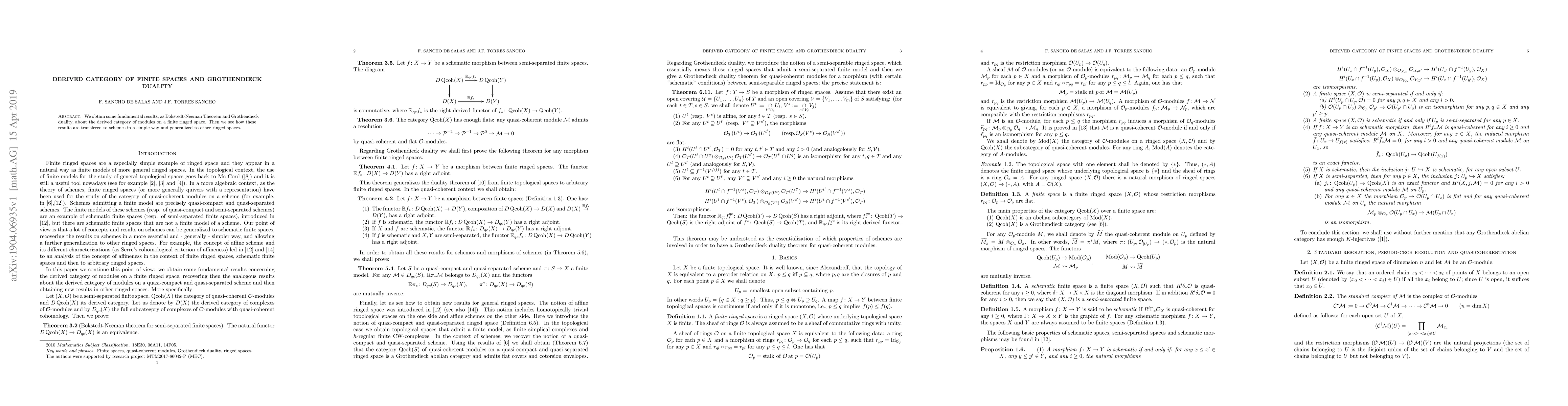 This paper establishes fundamental results regarding the derived category of modules on finite ringed spaces, including the Bokstedt-Neeman Theorem and Grothendieck duality, and demonstrates their transfer and generalization to schemes and other ringed spaces.