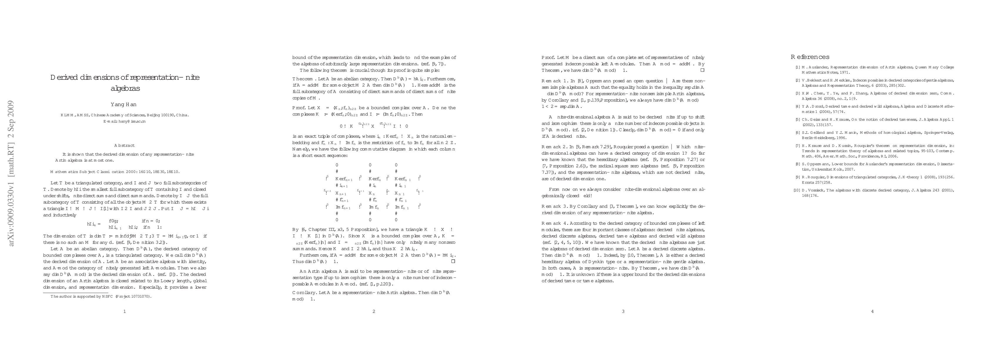 A study finds that the derived dimension of representation-finite Artin algebras is at most one, meaning they can have only a single generator in terms of their algebraic structure.
