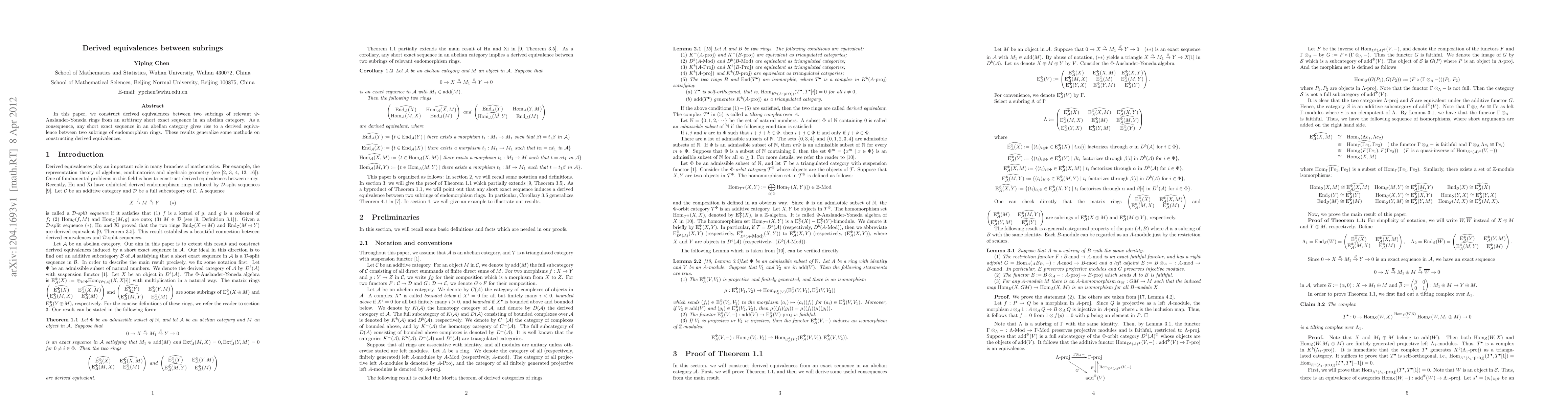 This paper constructs derived equivalences between subrings of $\Phi$-Auslander-Yoneda rings using arbitrary short exact sequences in an abelian category, generalizing methods for constructing derived equivalences. The results show that any short exact sequence leads to a derived equivalence between subrings of endomorphism rings.