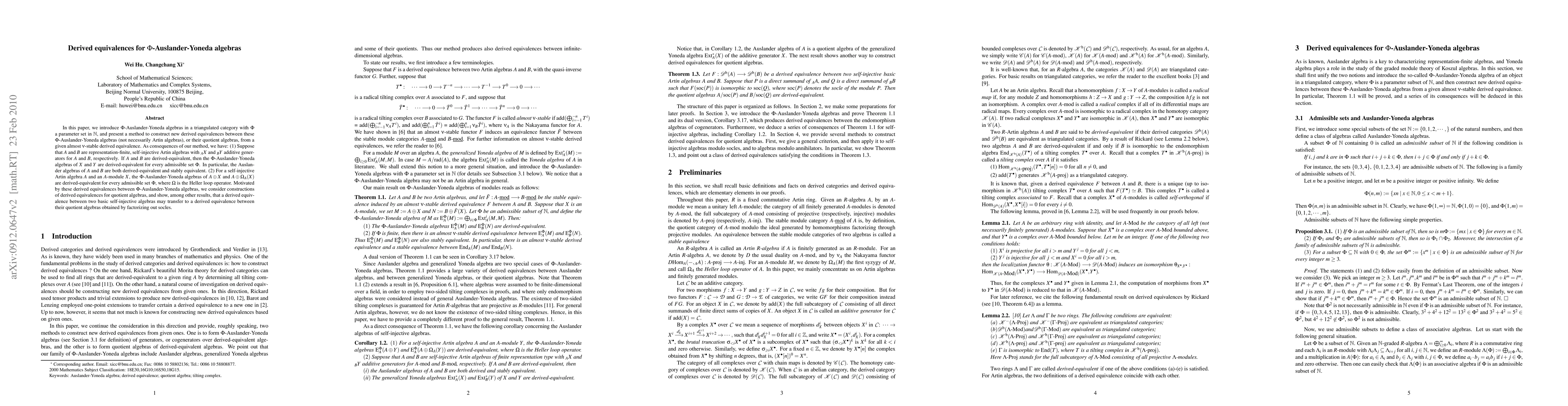 In this paper, we introduce $\Phi$-Auslander-Yoneda algebras in a triangulated category with $\Phi$ a parameter set in $\mathbb N$, and provide a method to construct new derived equivalences between these $\Phi$-Auslander-Yoneda algebras (not necessarily Artin algebras), or their quotient algebras, from a given almost $\nu$-stable derived equivalence. As consequences of our method, we have: (1) Suppose that $A$ and $B$ are representation-finite, self-injective Artin algebras with $_AX$ and $_BY$ additive generators for $A$ and $B$, respectively. If $A$ and $B$ are derived-equivalent, then the $\Phi$-Auslander-Yoneda algebras of $X$ and $Y$ are derived-equivalent for every admissible set $\Phi$. In particular, the Auslander algebras of $A$ and $B$ are both derived-equivalent and stably equivalent. (2) For a self-injective Artin algeba $A$ and an $A$-module $X$, the $\Phi$-Auslander-Yoneda algebras of $A\oplus X$ and $A\oplus \Omega_A(X)$ are derived-equivalent for every admissible set $\Phi$, where $\Omega$ is the Heller loop operator. Motivated by these derived equivalences between $\Phi$-Auslander-Yoneda algebras, we consider constructions of derived equivalences for quotient algebras, and show, among others, that a derived equivalence between two basic self-injective algebras may transfer to a derived equivalence between their quotient algebras obtained by factorizing out socles.