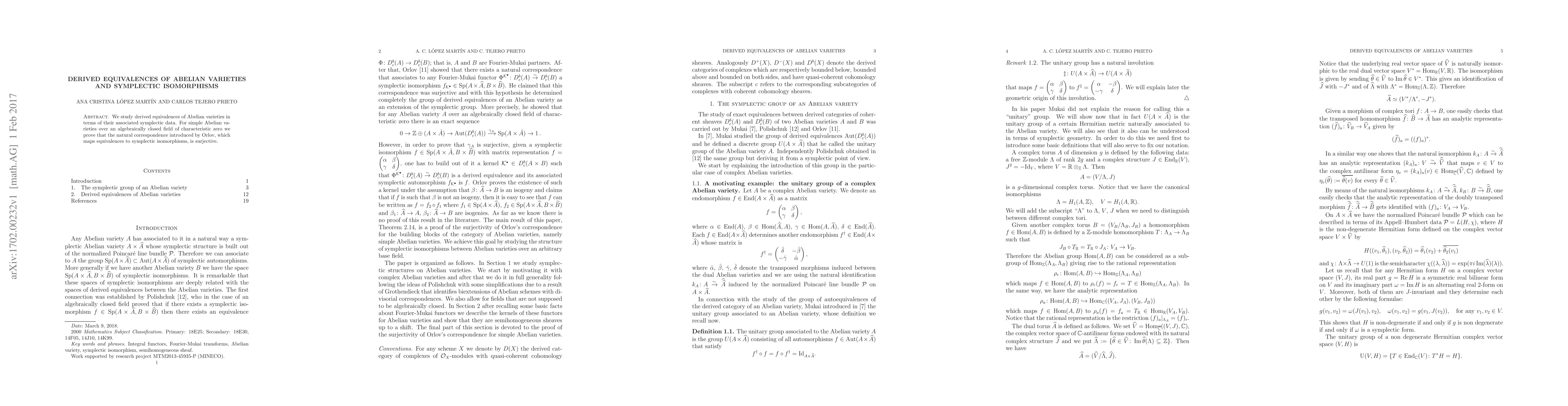 This paper explores derived equivalences between Abelian varieties and connects them to symplectic isomorphisms. It proves that for simple Abelian varieties over a characteristic zero field, the symplectic isomorphisms correspond surjectively to the derived equivalences as introduced by Orlov.