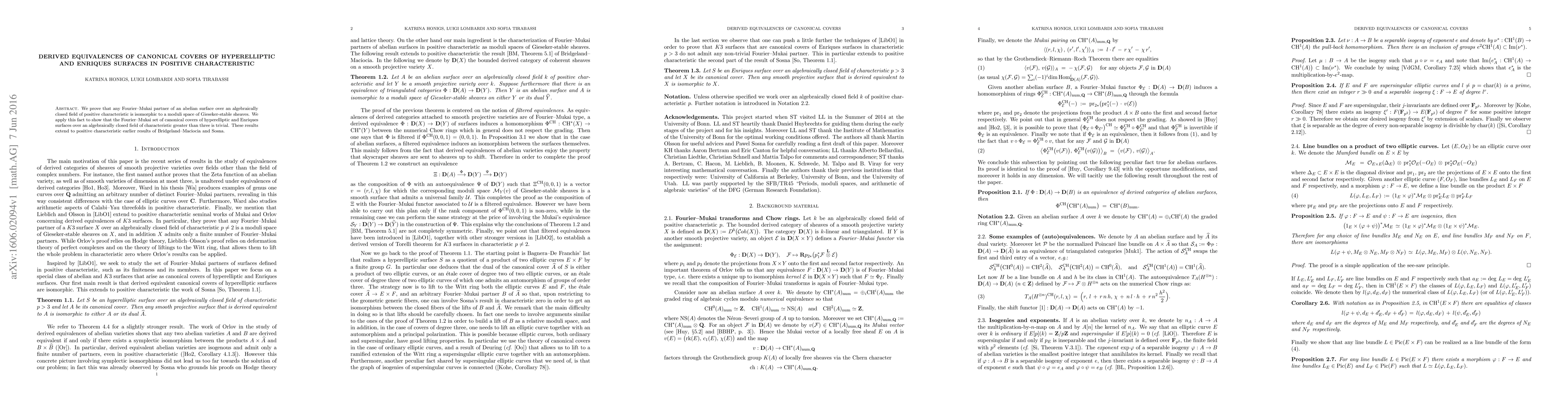 Summary: The paper proves that Fourier-Mukai partners of abelian surfaces in positive characteristic are isomorphic to moduli spaces of Gieseker-stable sheaves, showing that the Fourier-Mukai set for canonical covers of hyperelliptic and Enriques surfaces in such fields is trivial. This extends prior results from characteristic zero to positive characteristic.