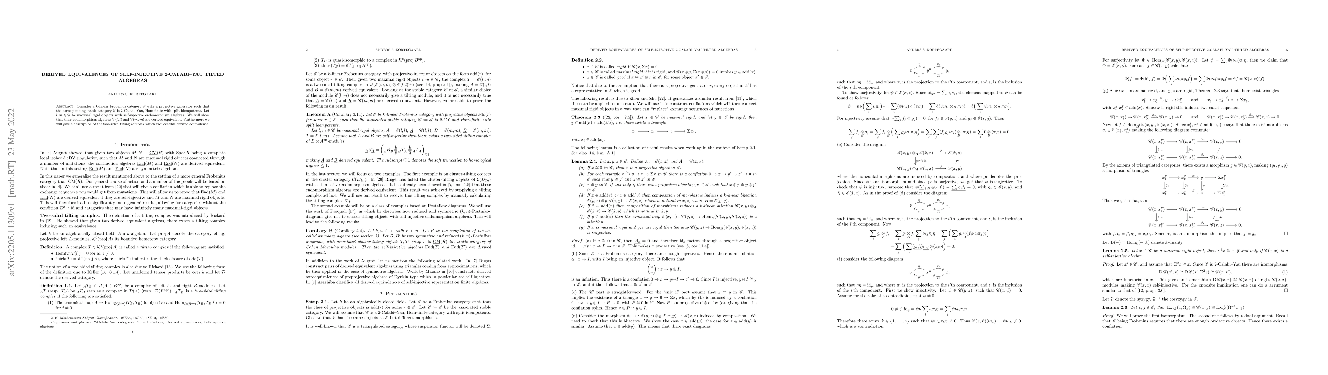 Consider a $k$-linear Frobenius category $\mathscr{E}$ with a projective generator such that the corresponding stable category $\mathscr{C}$ is 2-Calabi--Yau, Hom-finite with split idempotents. Let $l,m\in\mathscr{C}$ be maximal rigid objects with self-injective endomorphism algebras. We will show that their endomorphism algebras $\mathscr{C}(l,l)$ and $\mathscr{C}(m,m)$ are derived equivalent. Furthermore we will give a description of the two-sided tilting complex which induces this derived equivalence.