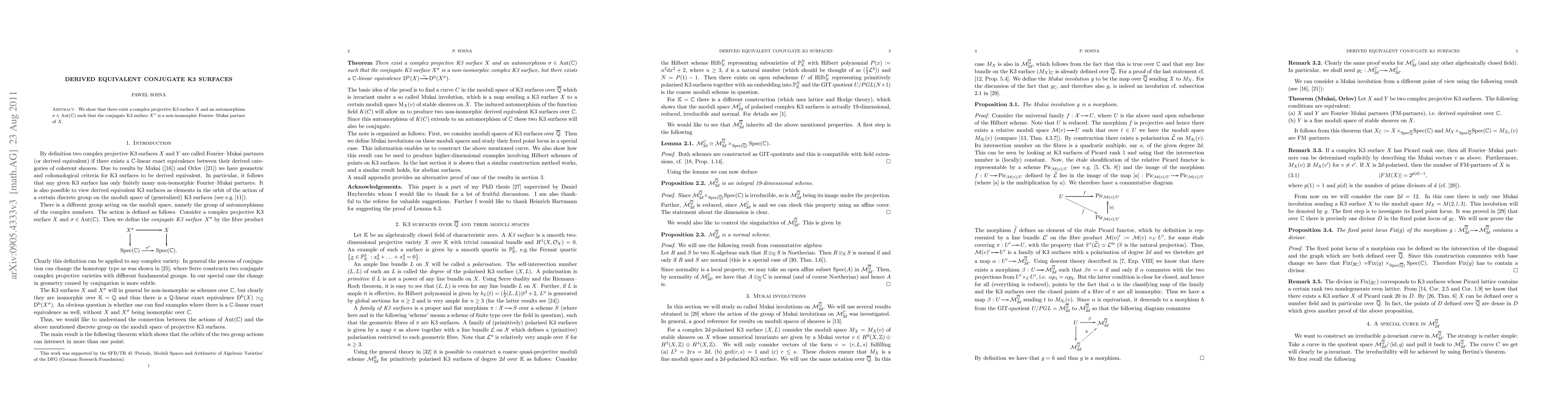 We show that there exist a complex projective K3 surface $X$ and an automorphism of the complex numbers $\sigma$ such that the conjugate K3 surface $X^\sigma$ is a non-isomorphic Fourier-Mukai partner of $X$.