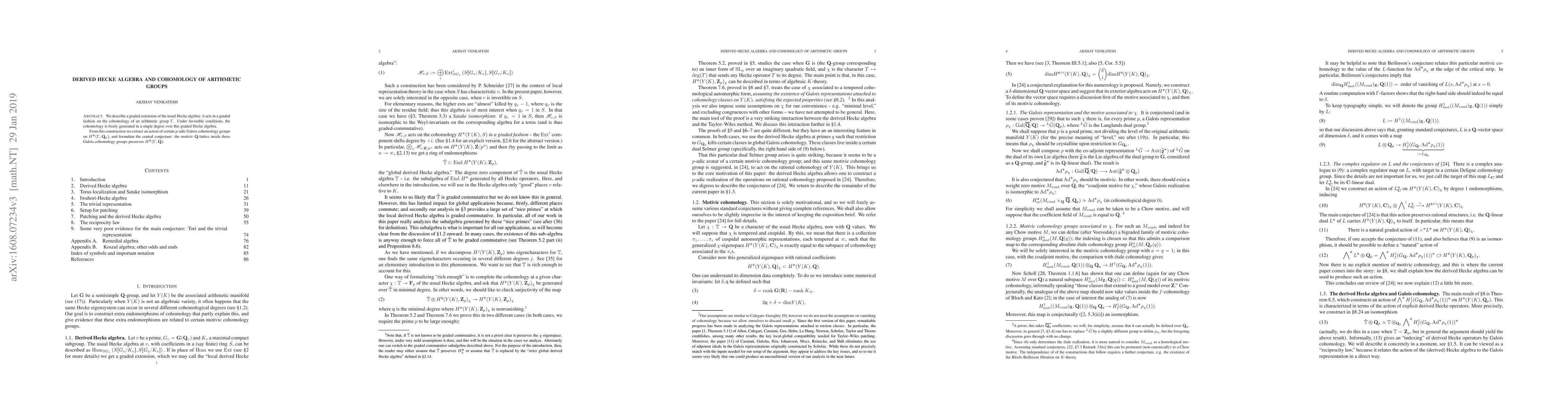 This paper extends the Hecke algebra to act on the cohomology of arithmetic groups, showing that under certain conditions, the cohomology is freely generated in a single degree. It also links this graded Hecke algebra to $p$-adic Galois cohomology and proposes a central conjecture about the preservation of a motivic $\mathbb{Q}$-lattice in these Galois cohomology groups.
