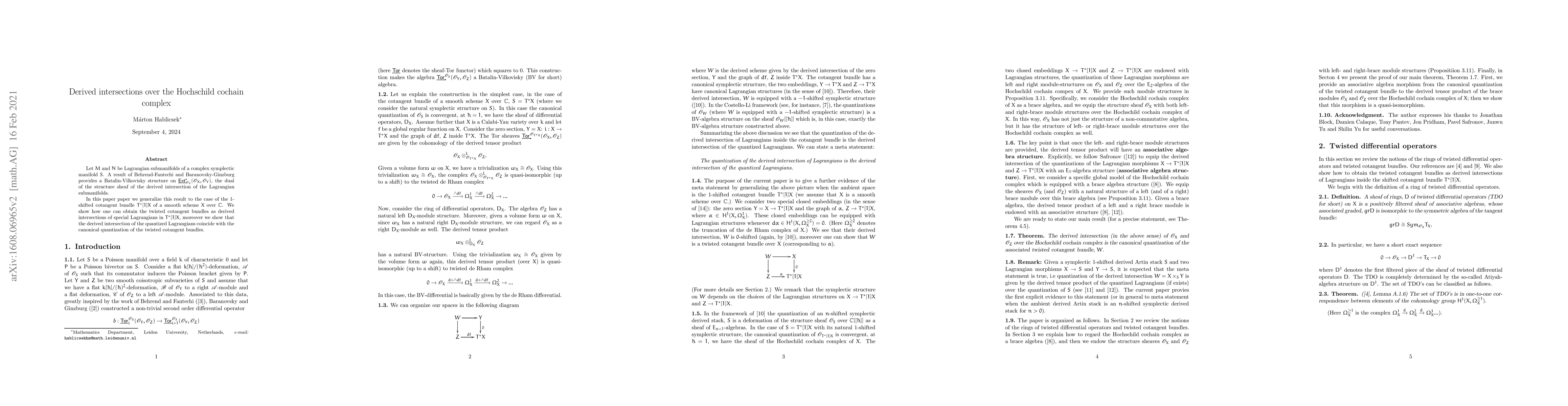 The paper generalizes a result of Behrend-Fantechi and Baranovsky-Ginzburg to the 1-shifted cotangent bundle $T^*X[1]$ of a smooth scheme $X$ over the field of complex numbers. We show how one can obtain twisted cotangent bundles as derived intersections of Lagrangians in $T^*X[1]$, moreover and we show that the derived intersection of the quantized Lagrangians coincide with the canonical quantization of the twisted cotangent bundles.