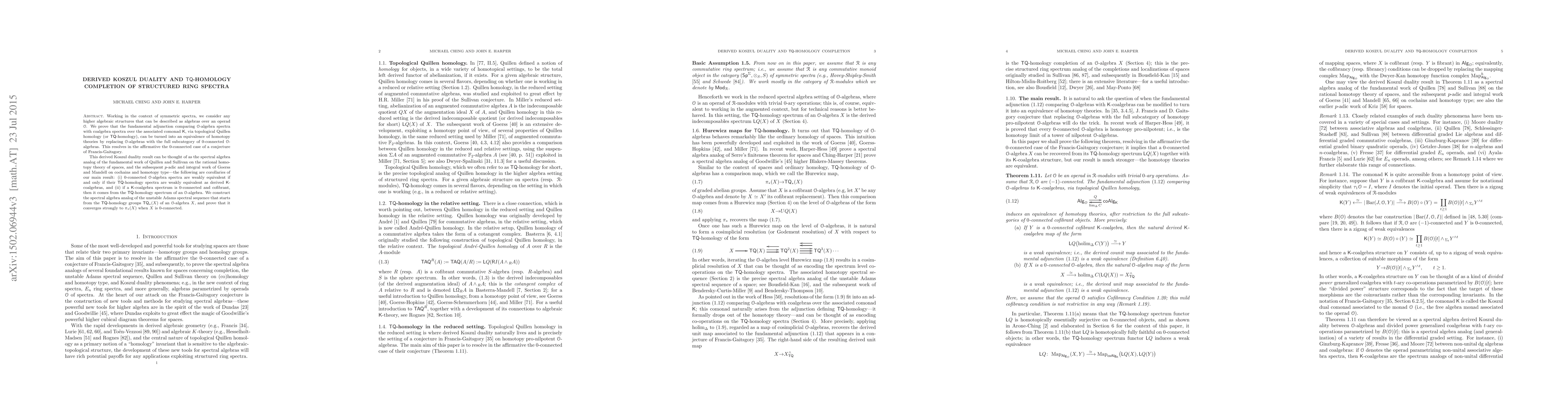 The paper proves that under the 0-connected condition, O-algebra spectra and coalgebra spectra over the associated comonad K are equivalent via TQ-homology, resolving a conjecture by Francis-Gaitsgory. It establishes derived Koszul duality for symmetric spectra and provides a spectral algebra analog of the unstable Adams spectral sequence.