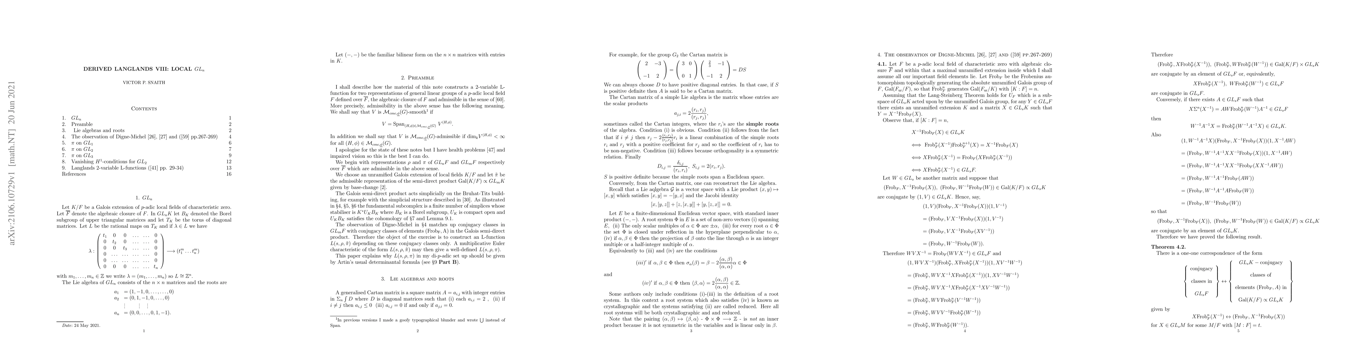 In this, the eighth article in my Derived Langlands series, I describe the construction of a 2-variable L-function for two representations of general linear groups of a $p$-adic local field. Due to extenuating health circumstances, many of the proofs and ideas herein are suggestive rather than the finished definitive versions.