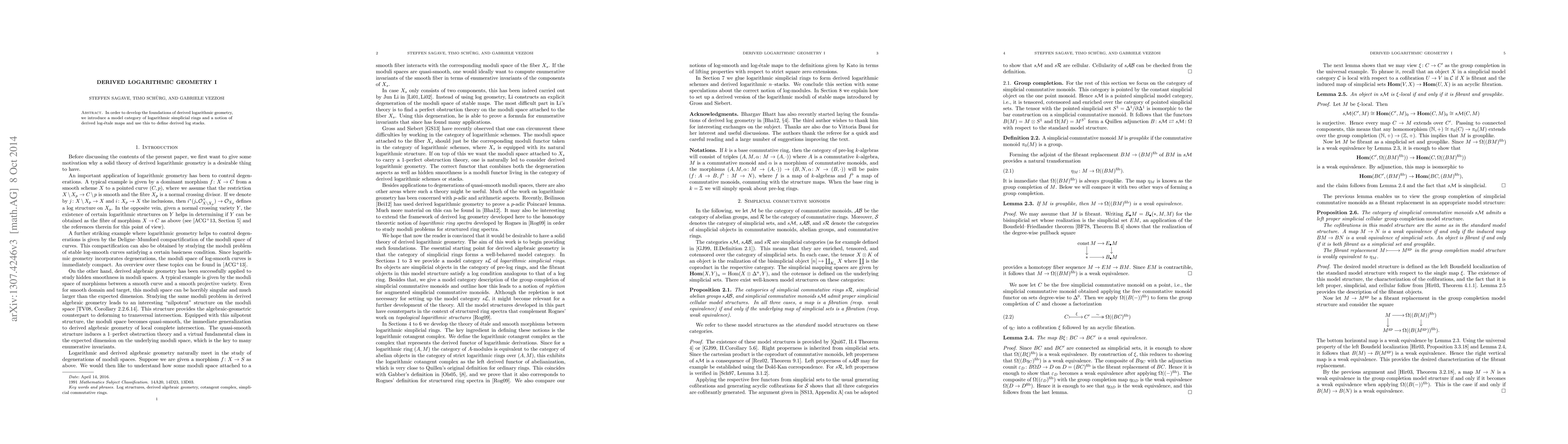 Summary: This paper establishes the groundwork for logarithmic derived geometry by introducing a model category of logarithmic simplicial rings and defining derived log \'etale maps, which are then used to construct derived log stacks.