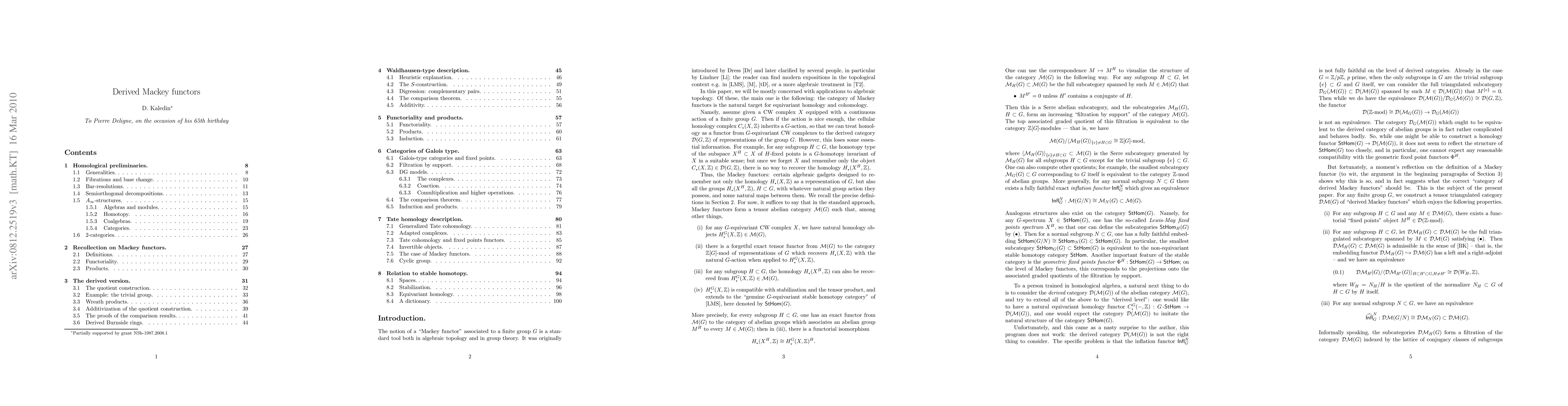For a finite group $G$, the so-called $G$-Mackey functors form an abelian category $M(G)$ that has many applications in the study of $G$-equivariant stable homotopy. One would expect that the derived category $D(M(G))$ would be similarly important as the "homological" counterpart of the $G$-equivariant stable homotopy category. It turns out that this is not so -- $D(M(G))$ is pathological in many respects. We propose and study a replacement for $D(M(G))$, a certain triangulated category $DM(G)$ of "derived Mackey functors" that contains $M(G)$ but is different from $D(M(G))$. We show that standard features of the $G$-equivariant stable homotopy category such as the fixed points functors of two types have exact analogs for the category $DM(G)$.