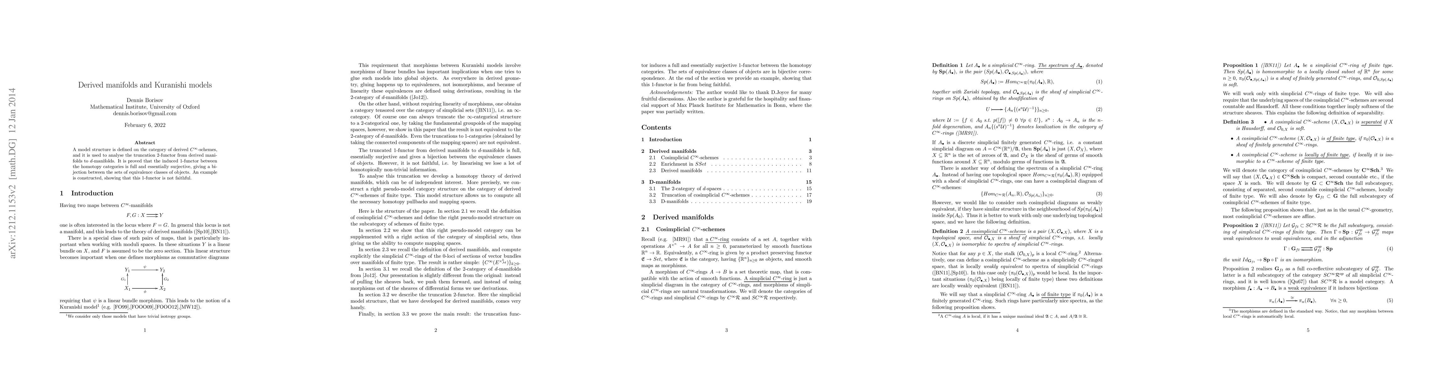 This paper establishes a model structure on derived differentiable schemes and analyzes a truncation 2-functor from derived manifolds to d-manifolds. It proves the induced 1-functor between homotopy categories is full and essentially surjective, though an example shows it is not faithful.