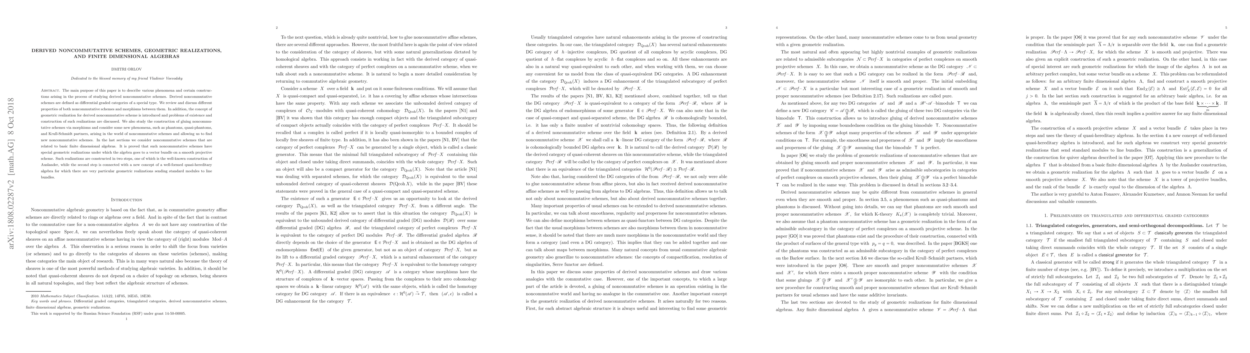 This paper explores derived noncommutative schemes, introducing geometric realizations and examining their properties, including new phenomena like phantoms and quasi-phantoms. It also investigates the relationship between these schemes and finite dimensional algebras, proving that certain schemes have specific geometric realizations mapping algebras to vector bundles on smooth projective schemes.