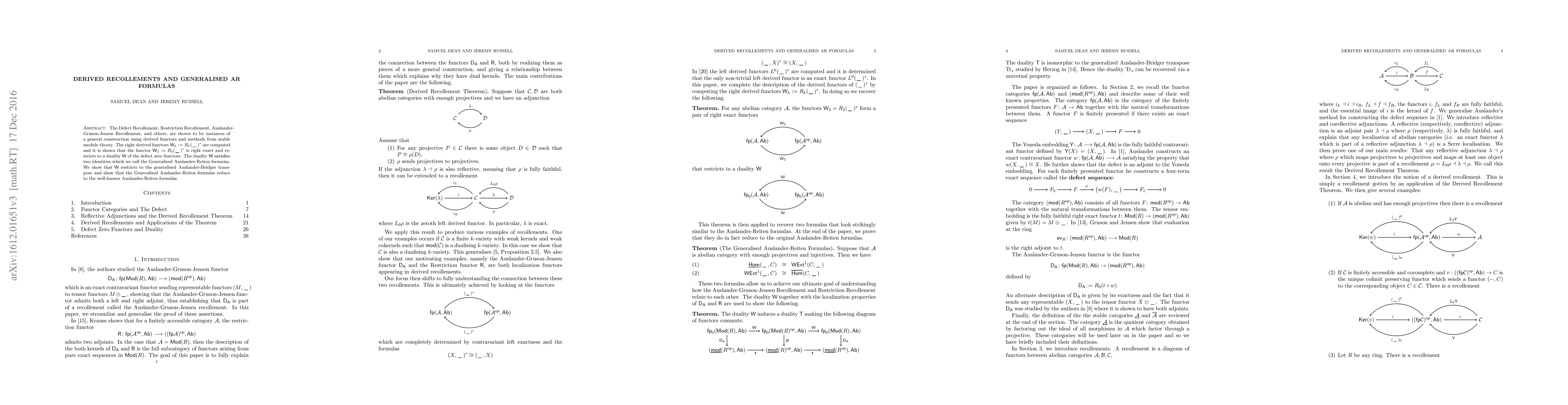 The Defect Recollement, Restriction Recollement, Auslander-Gruson-Jensen Recollement, and others, are shown to be instances of a general construction using derived functors and methods from stable module theory. The right derived functors $\textsf{W}_k:=R_k(\hspace{0.05cm}\underline{\ \ }\hspace{0.1cm} )^*$ are computed and it is shown that the functor $\textsf{W}_2:=R_2(\hspace{0.05cm}\underline{\ \ }\hspace{0.1cm} )^*$ is right exact and restricts to a duality $\textsf{W}$ of the defect zero functors. The duality $\textsf{W}$ satisfies two identities which we call the Generalised Auslander-Reiten formulas. We show that $\textsf{W}$ restricts to the generalised Auslander-Bridger transpose and show that the Generalised Auslander-Reiten formulas reduce to the well-known Auslander-Reiten formulas.