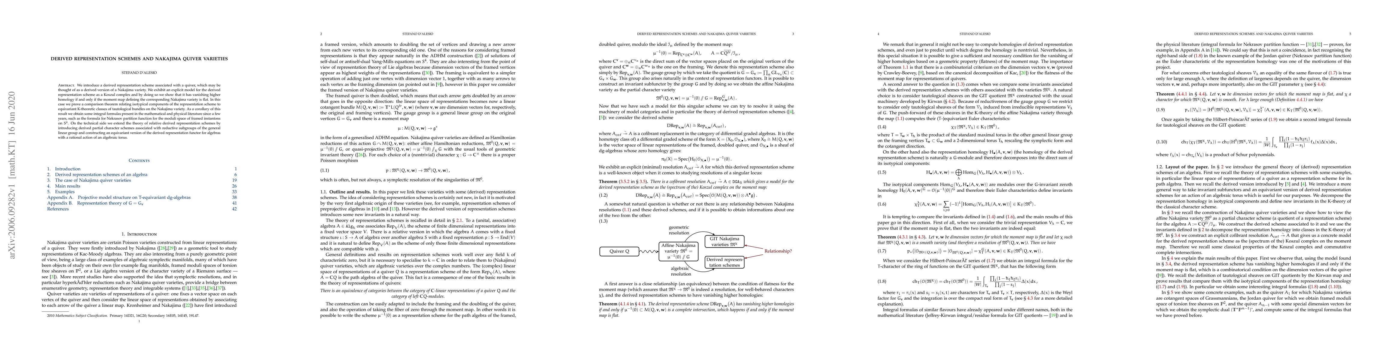 This paper introduces derived representation schemes associated with quivers as a derived version of Nakajima varieties, and models them explicitly using Koszul complexes. It establishes a connection between vanishing higher homology in these schemes and the flatness of moment maps in corresponding Nakajima varieties, leading to a comparison theorem relating representation schemes' isotypical components to equivariant K-theory classes.