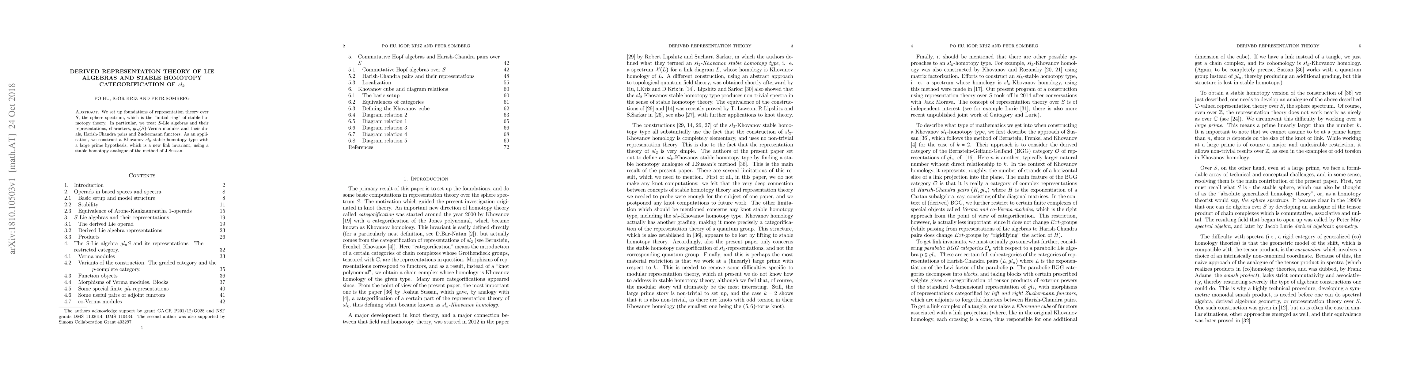 This paper establishes the foundational framework for representation theory over the sphere spectrum $S$ in stable homotopy theory, focusing on $S$-Lie algebras and their representations, and constructs a Khovanov $sl_k$-stable homotopy type, providing a novel link invariant under a large prime hypothesis.