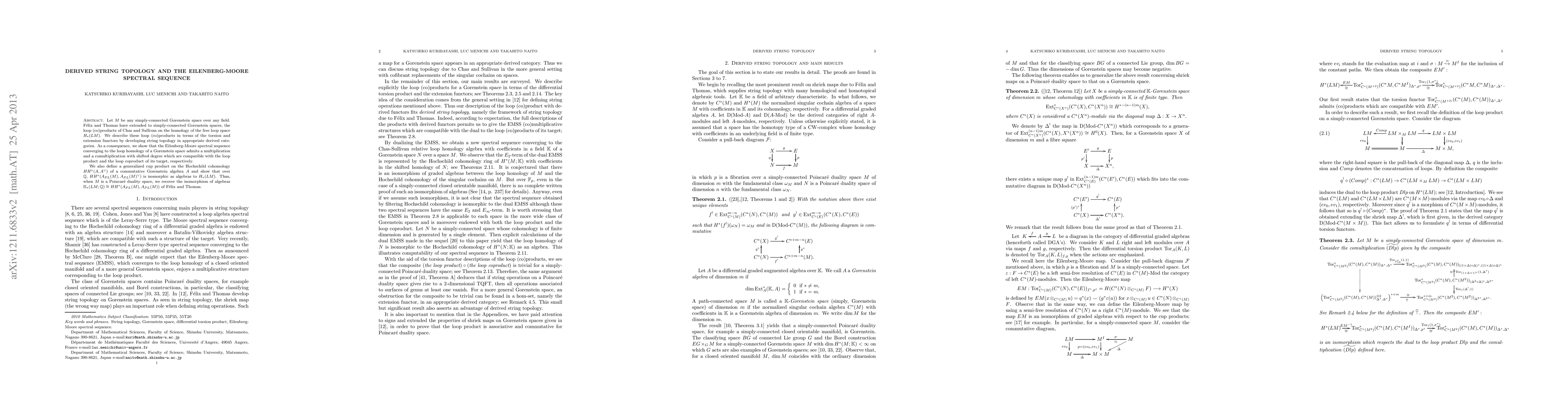 Let $M$ be any simply-connected Gorenstein space over any field. F\'elix and Thomas have extended to simply-connected Gorenstein spaces, the loop (co)products of Chas and Sullivan on the homology of the free loop space $H_*(LM)$. We describe these loop (co)products in terms of the torsion and extension functors by developing string topology in appropriate derived categories. As a consequence, we show that the Eilenberg-Moore spectral sequence converging to the loop homology of a Gorenstein space admits a multiplication and a comultiplication with shifted degree which are compatible with the loop product and the loop coproduct of its target, respectively. We also define a generalized cup product on the Hochschild cohomology $HH^*(A,A^\vee)$ of a commutative Gorenstein algebra $A$ and show that over $\mathbb{Q}$, $HH^*(A_{PL}(M),A_{PL}(M)^\vee)$ is isomorphic as algebras to $H_*(LM)$. Thus, when $M$ is a Poincar\'e duality space, we recover the isomorphism of algebras $\mathbb{H}_*(LM;\mathbb{Q})^\cong HH^*(A_{PL}(M),A_{PL}(M))$ of F\'elix and Thomas.
