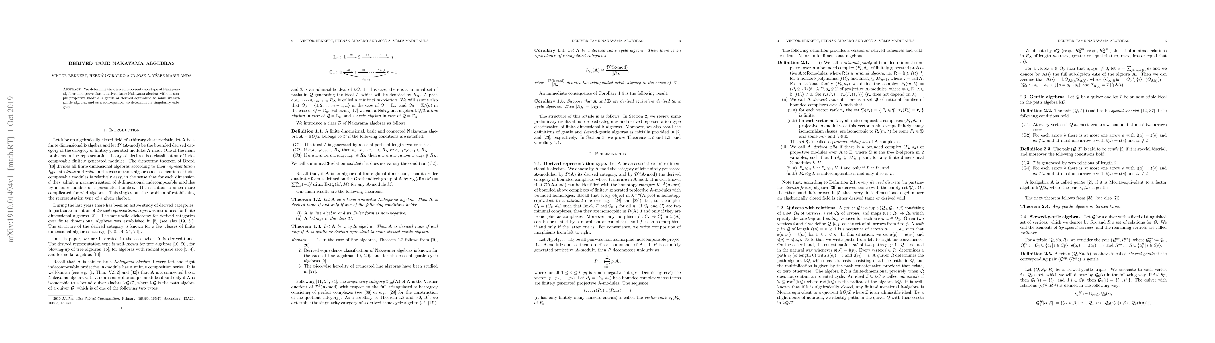 Summary: This paper investigates the derived representation type of Nakayama algebras, proving that derived tame Nakayama algebras without simple projective modules are gentle or derived equivalent to skewed-gentle algebras, leading to the determination of their singularity categories.