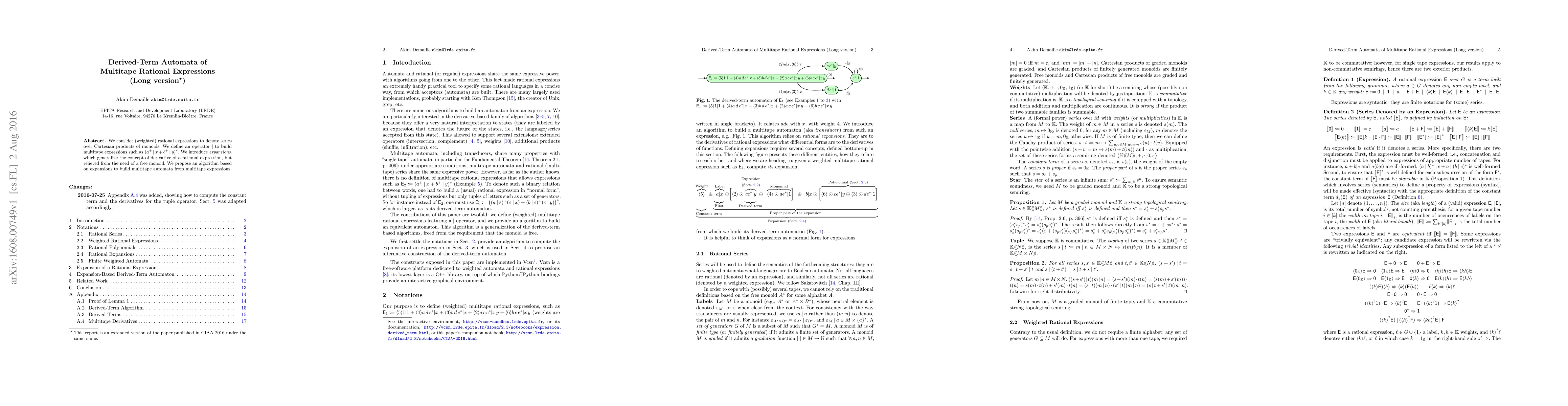 Summary: The paper introduces a new operator for constructing multitape weighted rational expressions and defines expansions to generalize the derivative concept. An algorithm is proposed to convert these expressions into multitape automata.