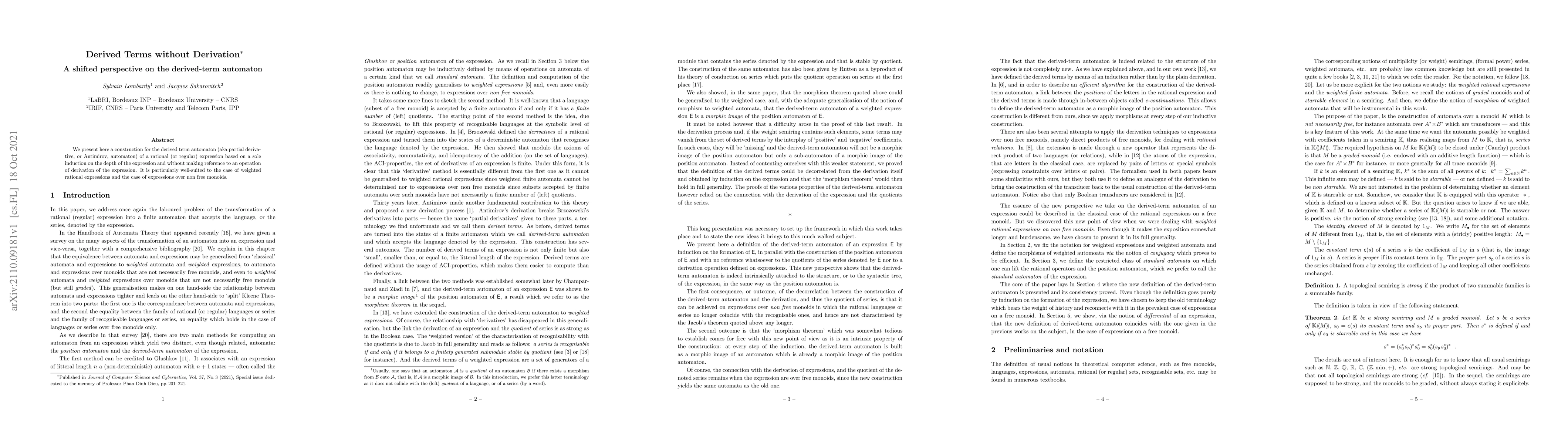 We present here a construction for the derived term automaton (aka partial derivative, or Antimirov, automaton) of a rational (or regular) expression based on a sole induction on the depth of the expression and without making reference to an operation of derivation of the expression. It is particularly well-suited to the case of weighted rational expressions.