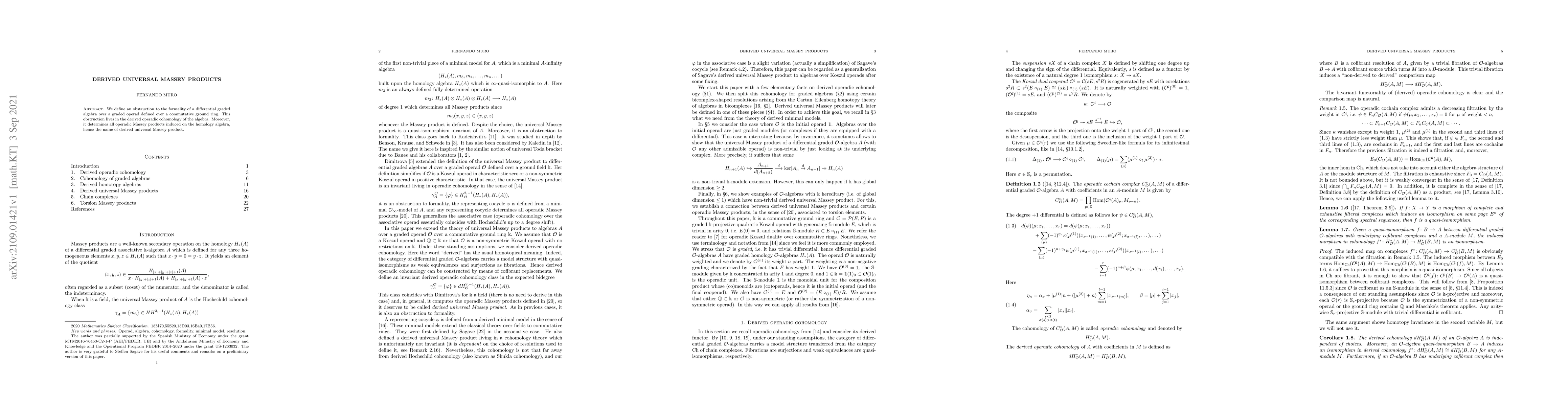 This paper introduces an obstruction to the formality of differential graded algebras over graded operads, residing in the derived operadic cohomology, which determines all induced operadic Massey products in the homology algebra. This obstruction is termed the derived universal Massey product.