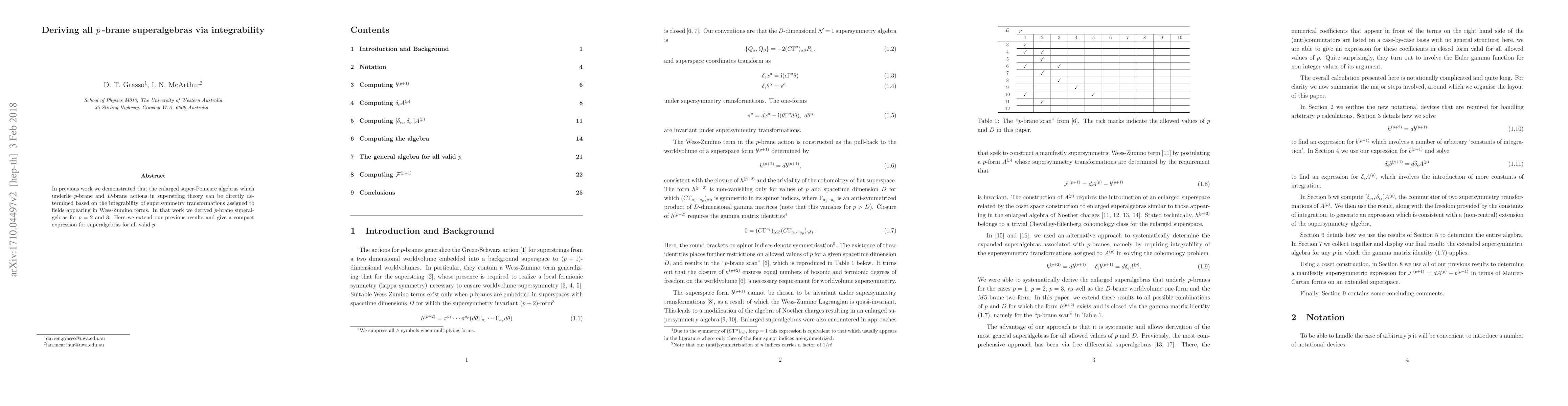 This paper extends previous work by deriving a unified method to determine all p-brane superalgebras using the integrability of supersymmetry transformations in Wess-Zumino terms, providing a comprehensive expression applicable to all valid p values.