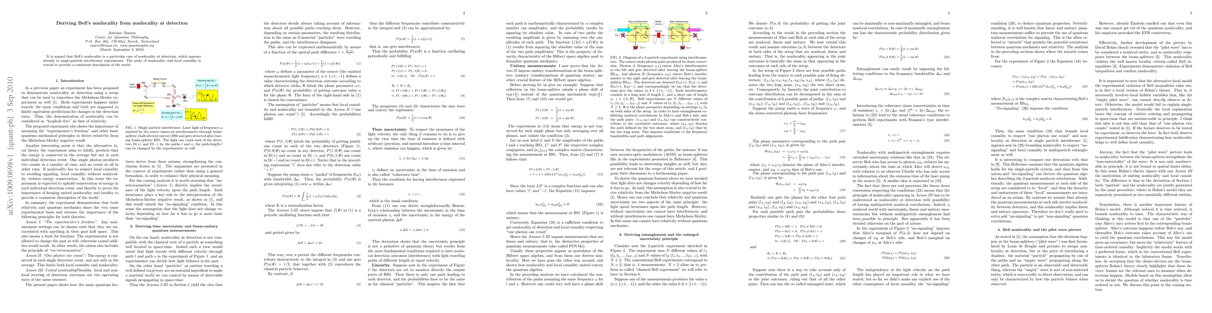 This paper argues that Bell's nonlocality can be derived from a broader concept of nonlocality at detection, which is evident in single-particle interference experiments. It emphasizes the importance of unifying nonlocality and local causality for a coherent understanding of the physical world.