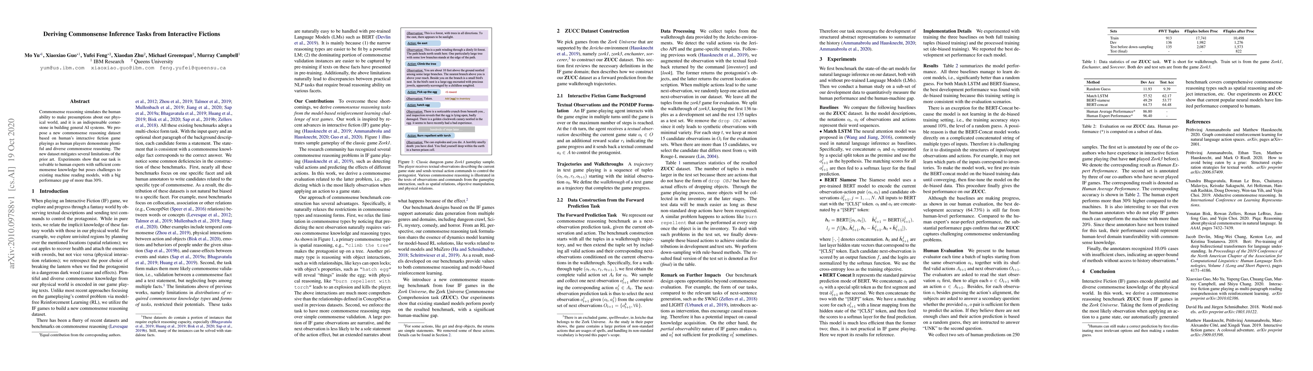 This paper introduces a new commonsense reasoning dataset derived from interactive fiction games, showcasing human players' diverse reasoning skills. The dataset addresses prior limitations and demonstrates that while human experts excel, current machine reading models lag significantly, highlighting a 30% performance gap.