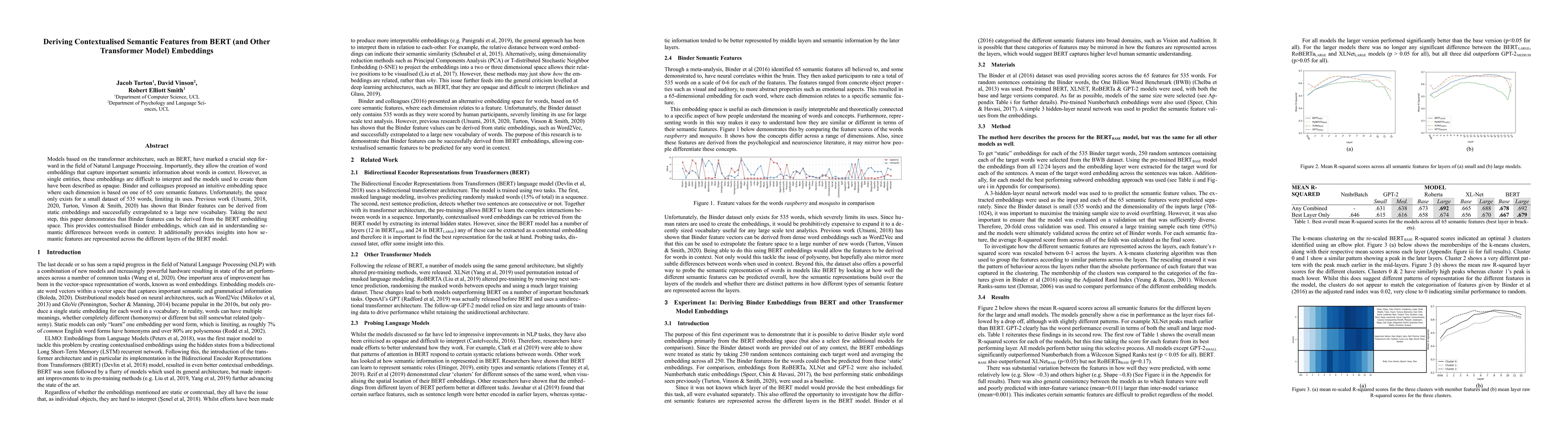 Models based on the transformer architecture, such as BERT, have marked a crucial step forward in the field of Natural Language Processing. Importantly, they allow the creation of word embeddings that capture important semantic information about words in context. However, as single entities, these embeddings are difficult to interpret and the models used to create them have been described as opaque. Binder and colleagues proposed an intuitive embedding space where each dimension is based on one of 65 core semantic features. Unfortunately, the space only exists for a small dataset of 535 words, limiting its uses. Previous work (Utsumi, 2018, 2020, Turton, Vinson & Smith, 2020) has shown that Binder features can be derived from static embeddings and successfully extrapolated to a large new vocabulary. Taking the next step, this paper demonstrates that Binder features can be derived from the BERT embedding space. This provides contextualised Binder embeddings, which can aid in understanding semantic differences between words in context. It additionally provides insights into how semantic features are represented across the different layers of the BERT model.