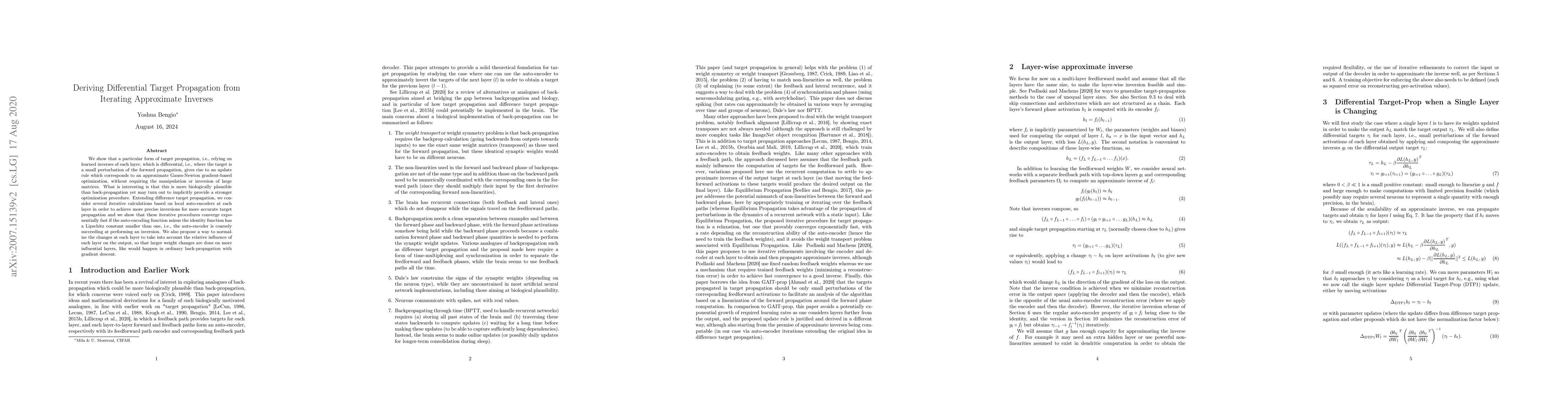This paper proposes a differential target propagation method using learned inverses of each layer, which corresponds to an approximate Gauss-Newton optimization. It demonstrates that this approach, more biologically plausible than back-propagation, converges exponentially fast through iterative local auto-encoders and normalizes weight changes based on layer influence.