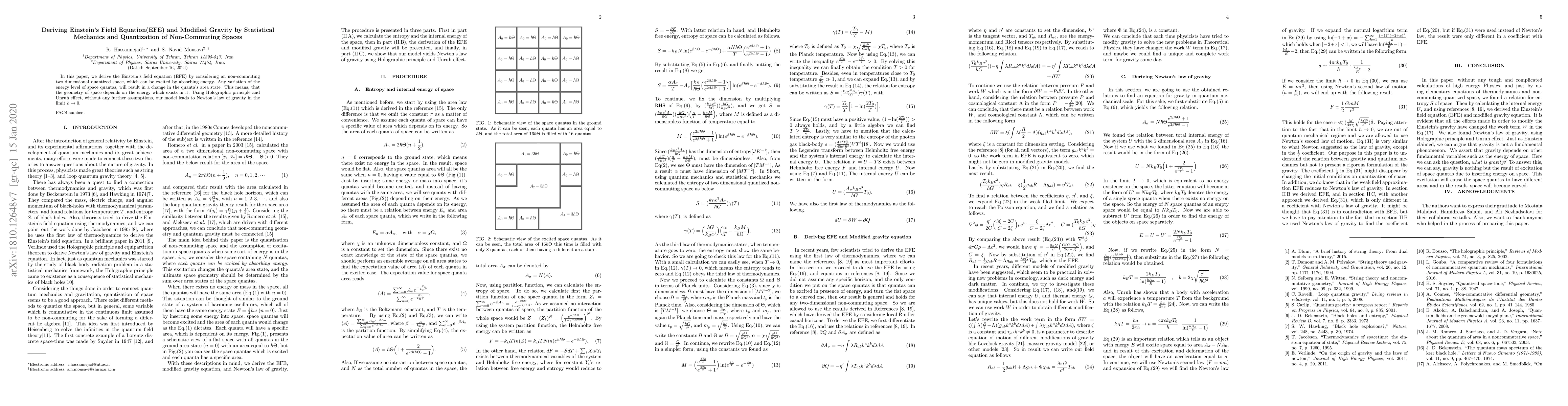 Researchers derived Einstein's Field Equation using a non-commuting space that changes geometry with energy levels, leading to Newton's law of gravity in the limit of low Planck constant.